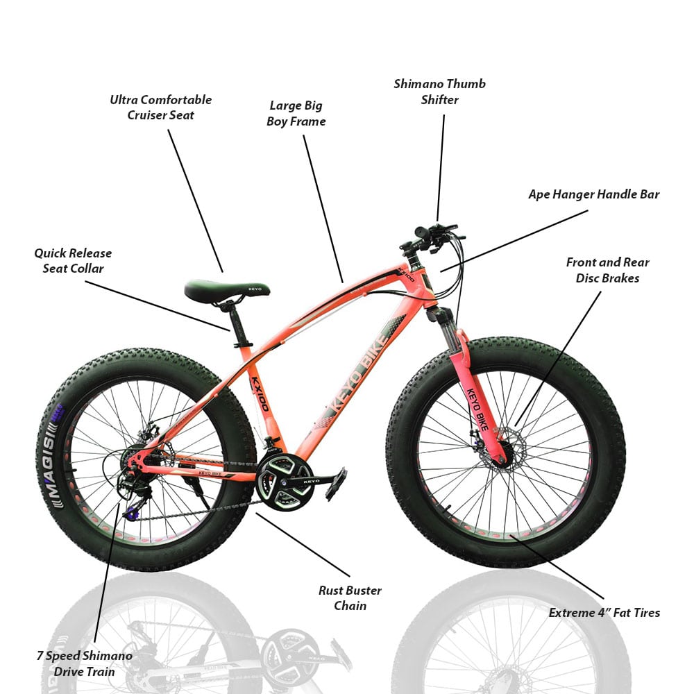 Keyobike KM002 26T Fat Tyre Mountain Jaguar Cycle 21 Speed Gears Shimano For Adults Steel Body (Orange)