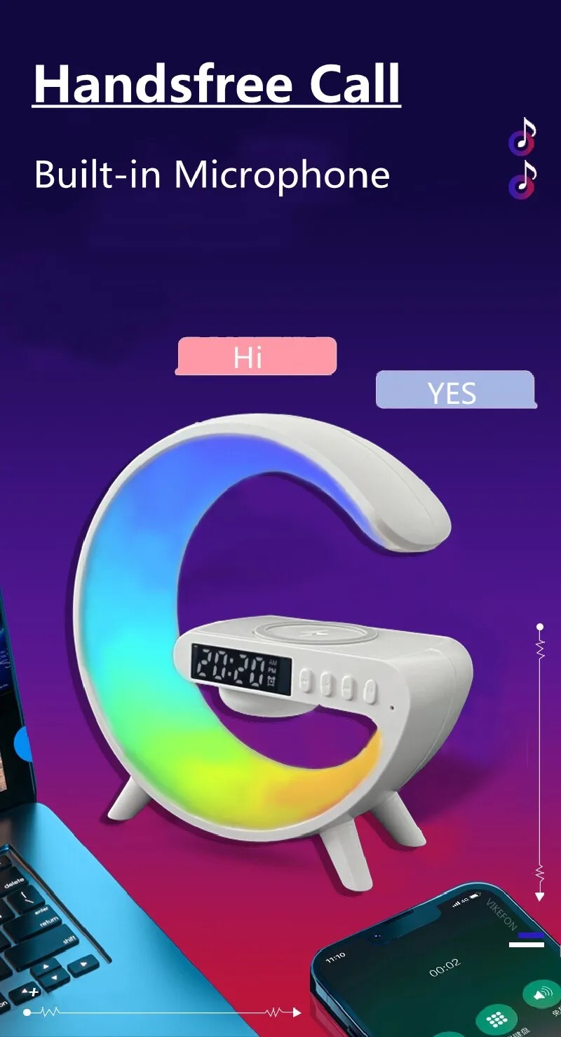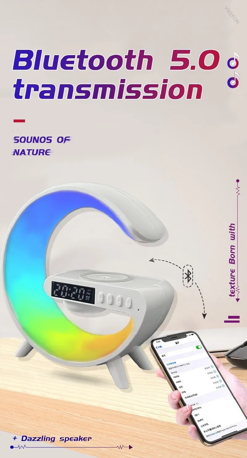 ONTEK Wireless Charger Atmosphere Lamp, 2023 New Intelligent LED Table Lamp, Bluetooth Speaker, Dimmable Night Light Touch Lamp Alarm Clock with Music Sync, App Control for Bedroom Home Decor